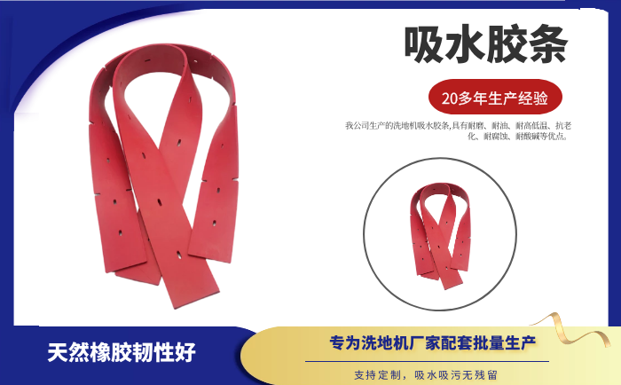 我公司生產的洗地機吸水膠條,具有耐磨、耐油、耐高低溫、抗老化、耐腐蝕、耐酸堿等優點。