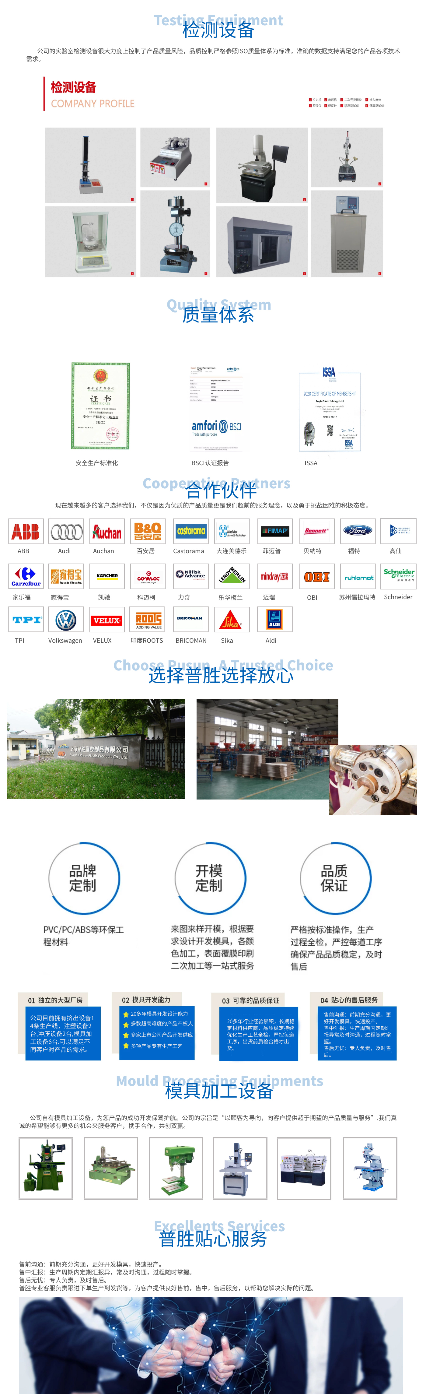 上海普勝塑膠制品有限公司是一家民營企業。坐落于上海之根松江區。公司產品遠銷美國、加拿大、英國、德國、法國、比利時、意大利等多個國家。 20多年的橡塑行業經驗,一直從事橡塑產品的研發和生產。掌握的工藝:擠塑、注塑、沖壓等橡塑制品工藝。通過資源整合,普勝成為橡塑產品領域的佼佼者。 公司的產品包括防水條、門掃條、密封條、吸水膠條、導電條等橡塑制品。